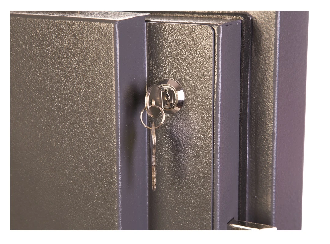 ― огнестойкость класса LFS 30P по евростандарту EN 15969, обеспечивающая гарантию защиты денежных знаков и документов от доступа огня не менее получаса при 1000°C (в реальных условиях подобная температура при возгорании не достигается). - Дверь на мощных внешних петлях раскрывается на 180 градусов. Её конструкция содержит ряд специальных технологических решений, направленных на защиту от выдавливания гидравлическим устройством, выбивания, распиливания петель, вырезания замков и иных способов повреждения.