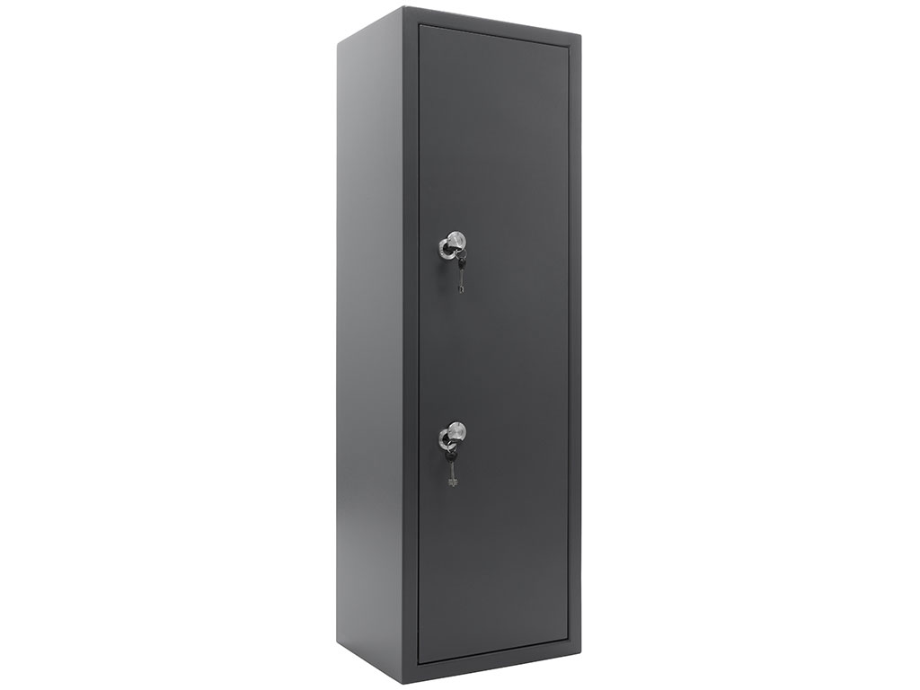 Сейф изготовлен в виде оружейного шкафа с одной распашной дверцей. Снабжен двумя ключевыми сувальдными замками с опечатывающим устройством. Корпус представляет собой сварную металлическую конструкцию, окрашенную порошковой краской нейтрального серого цвета (RAL 7024). Комплектуется 6 металлическими съёмными полками, которые образуют 7 ярусов(вместе с основанием) для размещения 56 пистолетов в подставках - по 8 единиц на уровень. Также на внутренней стороне дверей имеются 2 рамки для описи имущества.