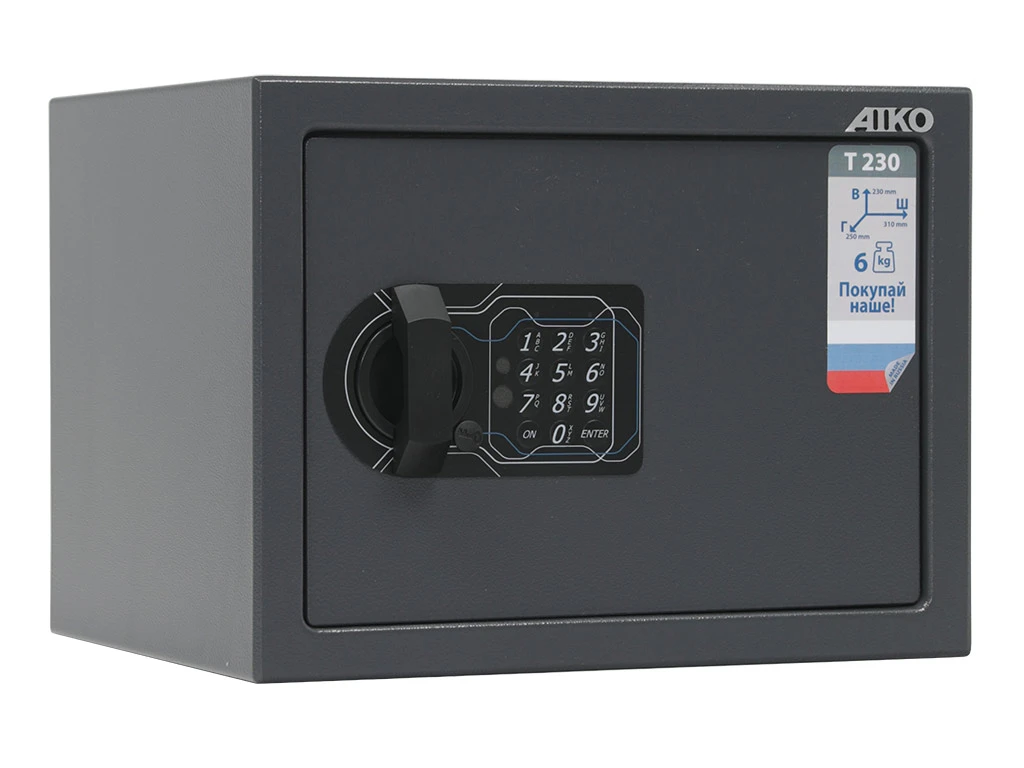 - — Офисный сейф Aiko T-230 EL имеет сертификат соответствия стандартам ГОСТ на начальную устойчивость ко взлому и соответствует требованиям МВД РФ к хранению огнестрельного оружия.